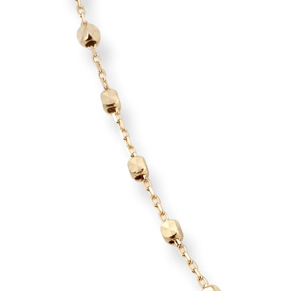 18ct Yellow Gold Necklace with Diamond Cut Beads and Heart Charm - Heart Charm Necklace